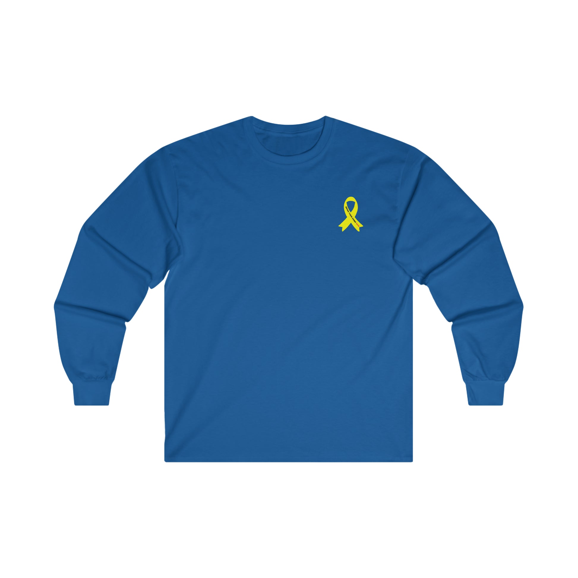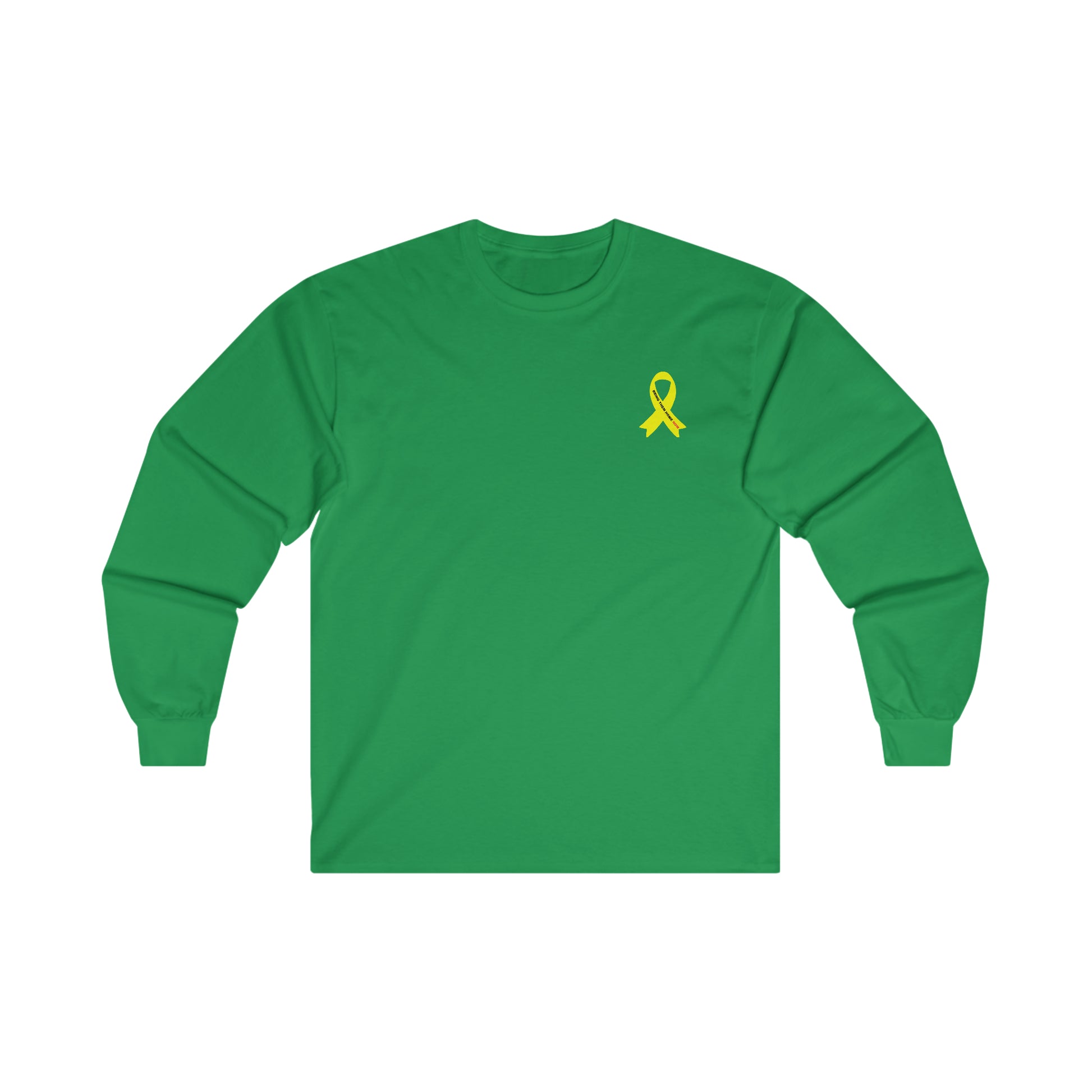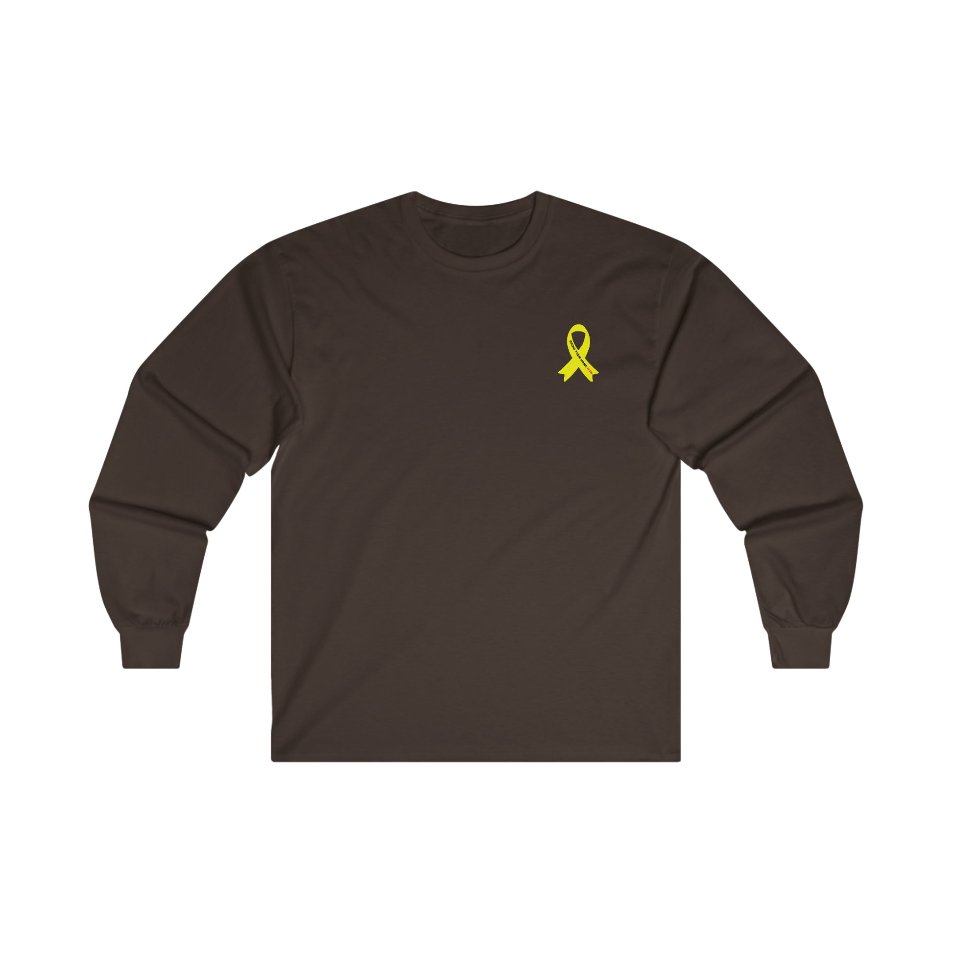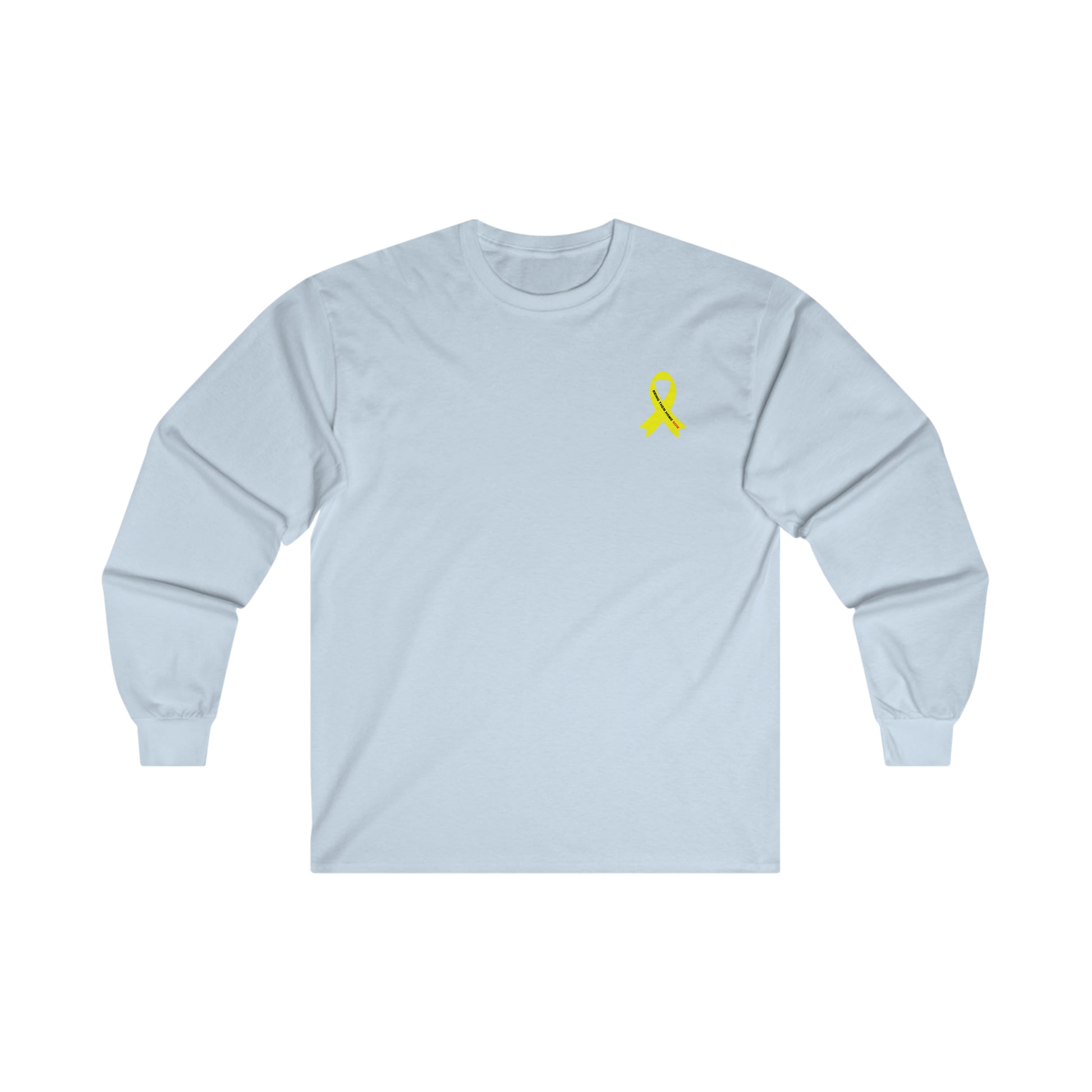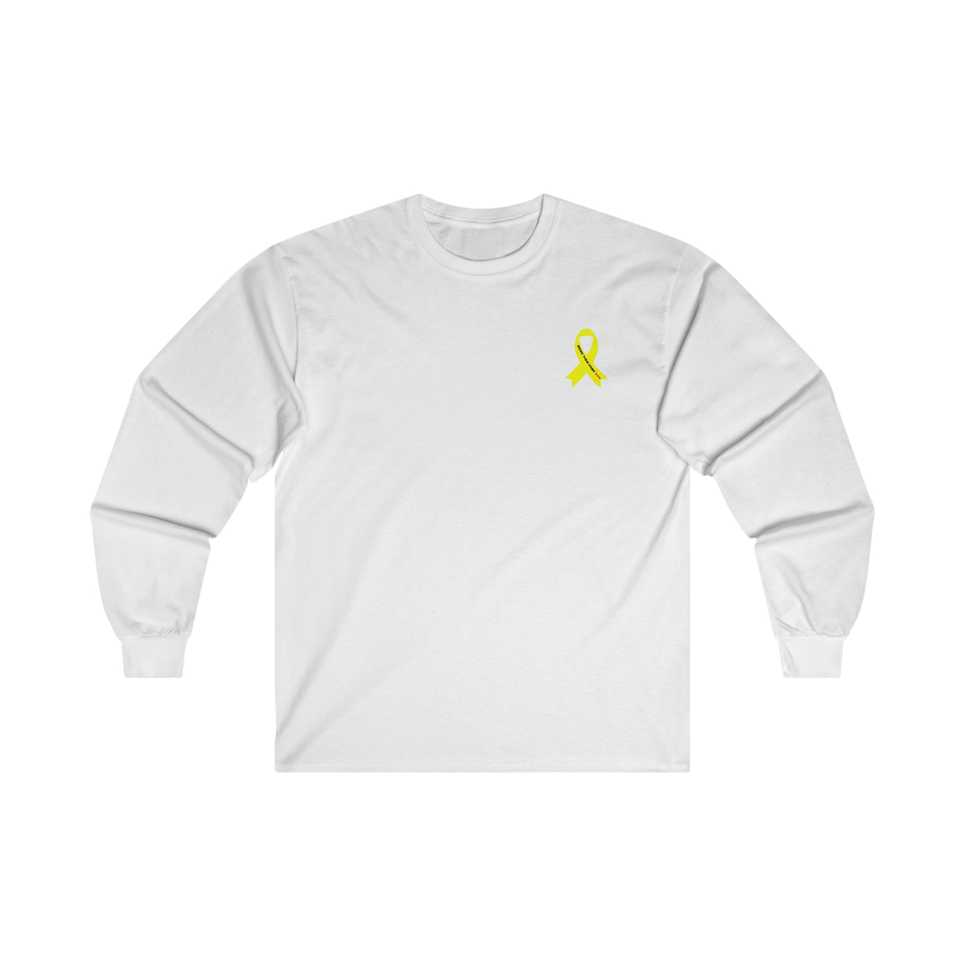 Adult Yellow shirt ribbon BRING THEM HOME NOW small print long sleeve t-shirt